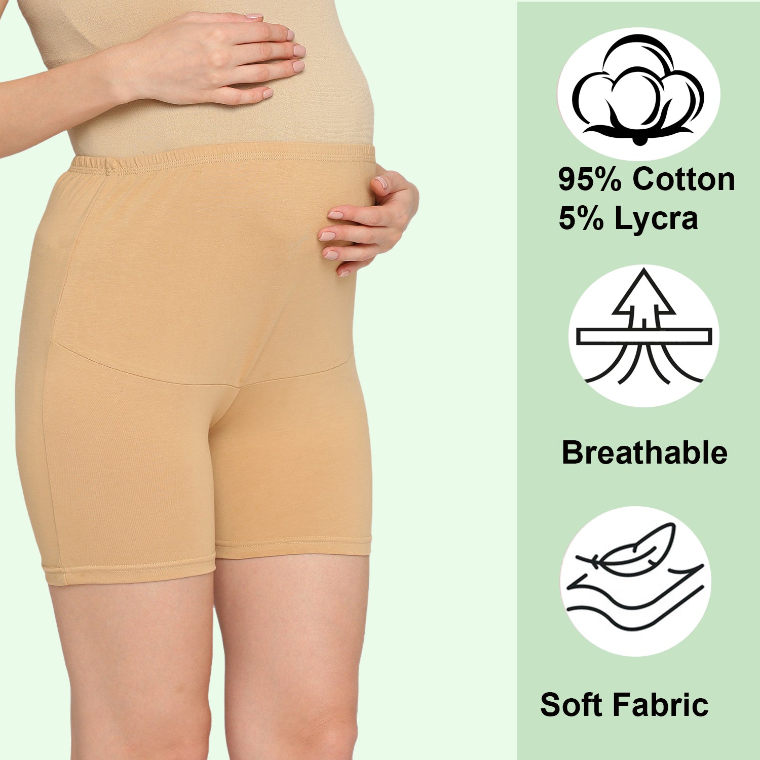 Evamomies Cotton Lycra Maternity Shorts Over The Belly for Pregnant Women for Pre & Post Pregnancy (Pack Of 1)