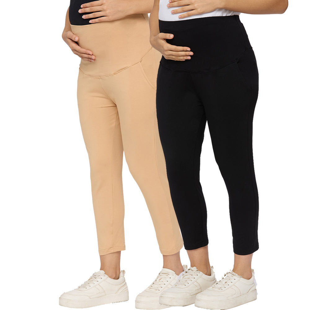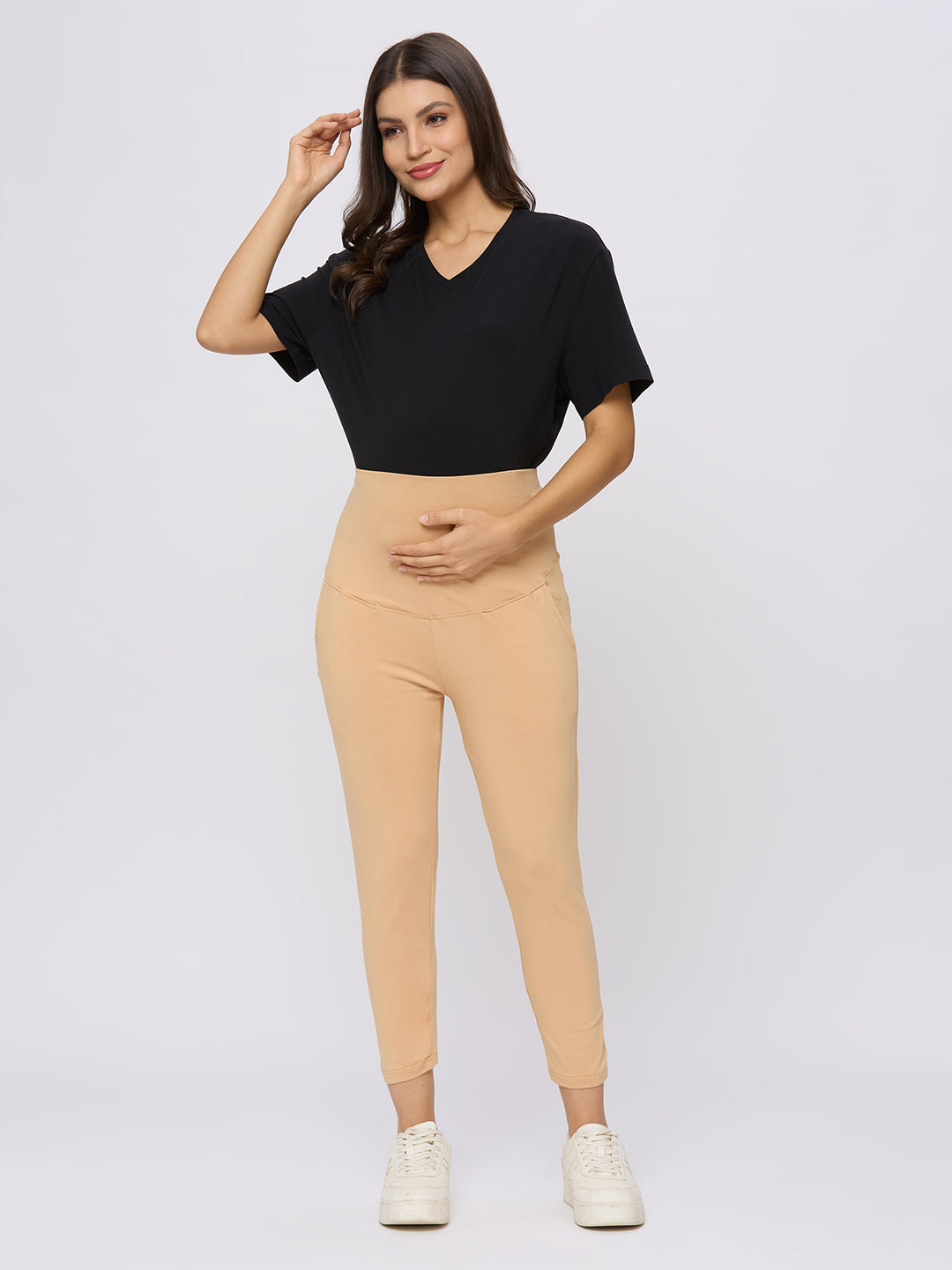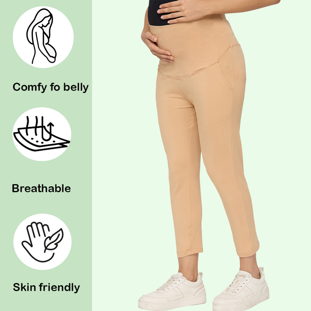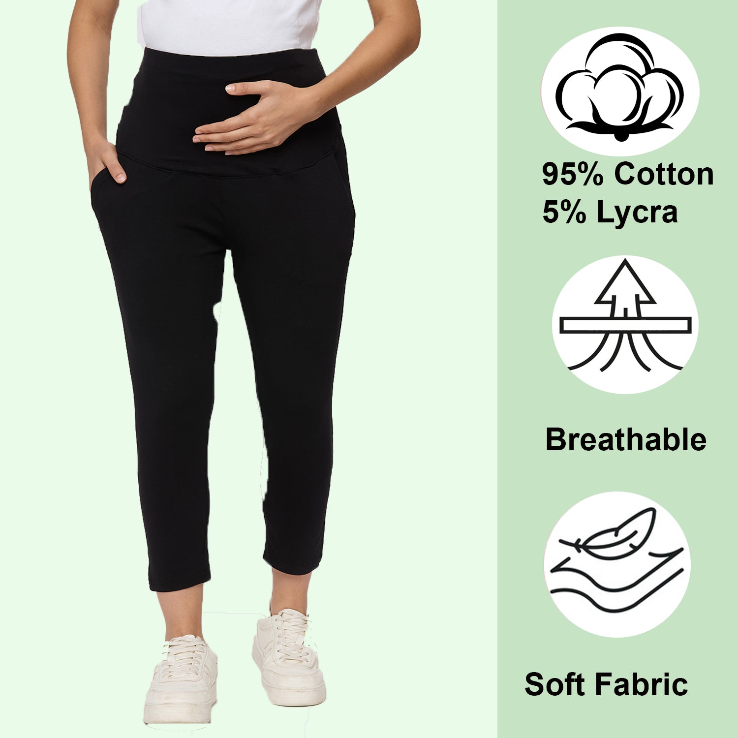 Evamomies Women's Cotton Lycra Maternity Leggings for Pregnant Women Pre & Post Pregnancy