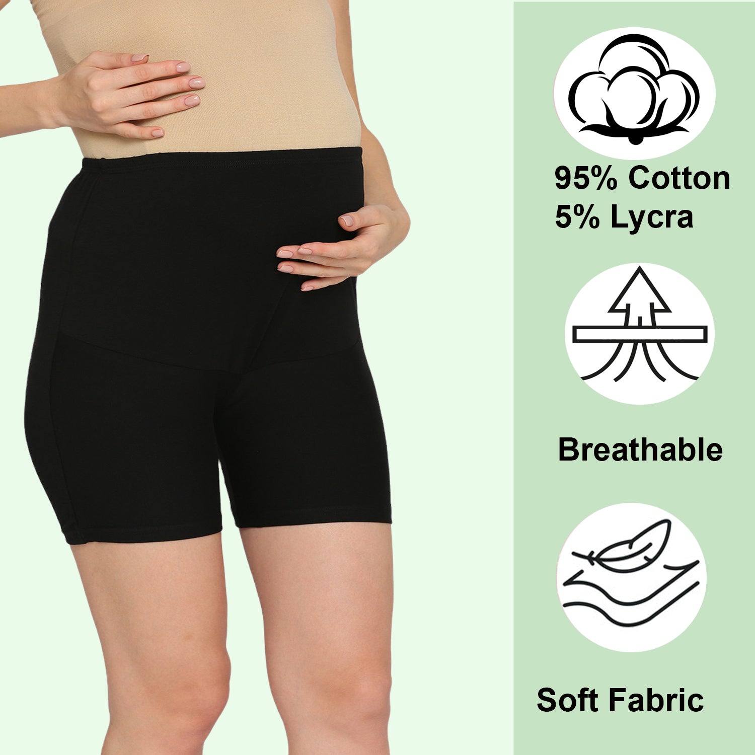 Evamomies Women's High Waist & Mid-Thigh Cotton Lycra Maternity Shorts|Pregnancy Panty|Maternity Panties Over The Belly for the Pre & Post Pregnancy