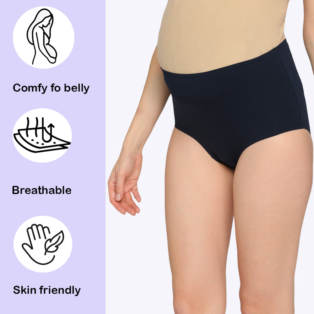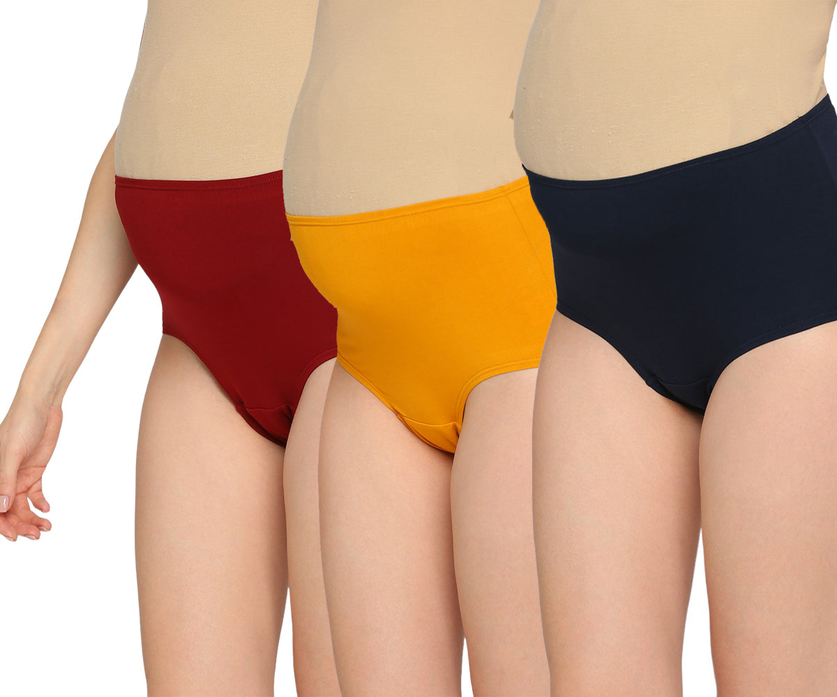 Evamomies Women's High Waist Soft Comfy Cotton Lycra Maternity Panty | Pregnancy Panty | Maternity Panties (Pack of 3)
